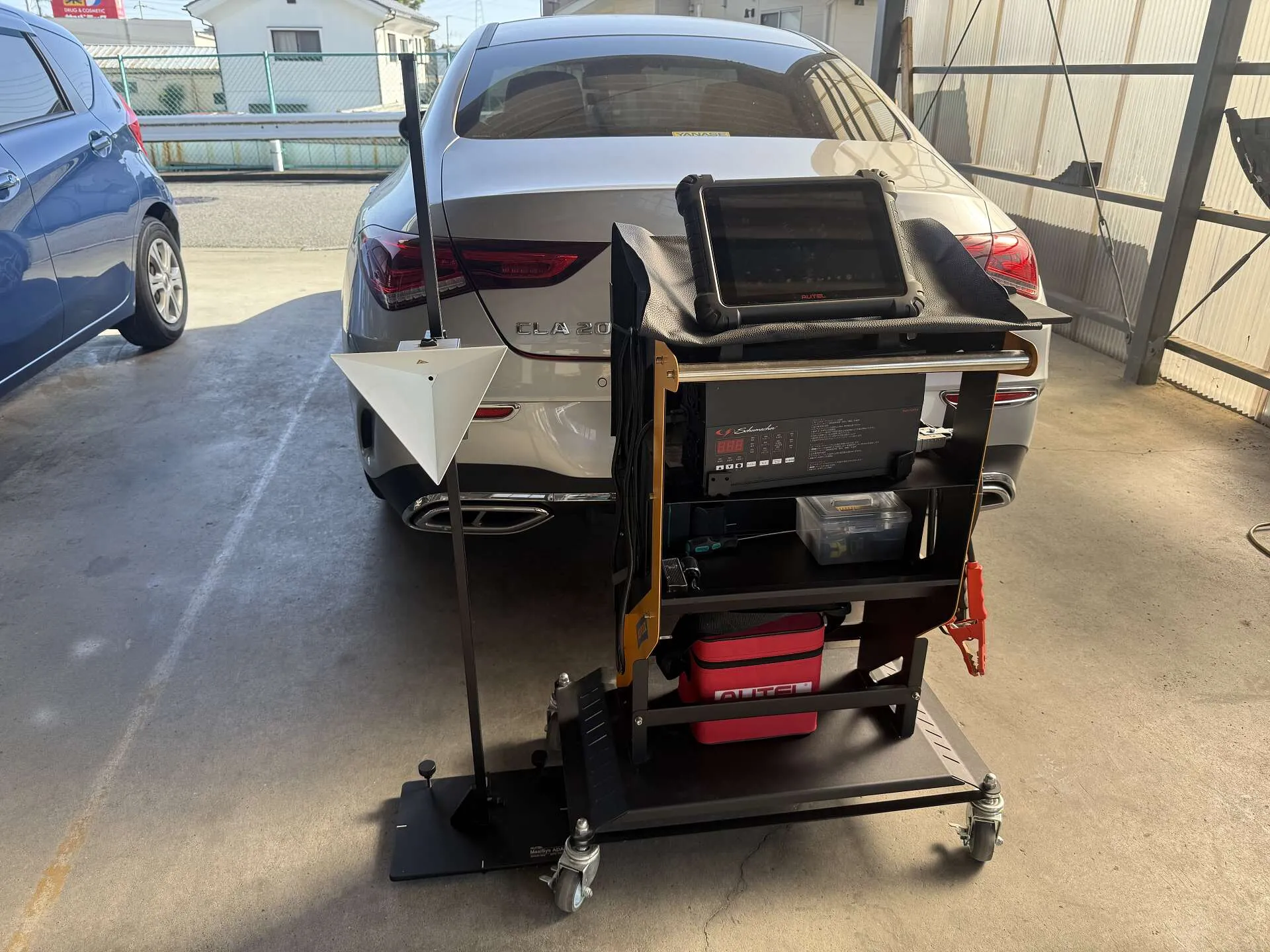 ガレージの中で、診断機器とともに停まる一台の車。普段見慣れた愛車も、こうしてプロの手によって